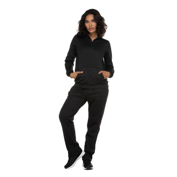 Básico para compor looks confortáveis e modernos no dia a dia, o Conjunto de Agasalho Feminino Oxer possui forro levemente flanelado e gola alta ajustada por zíper frontal.